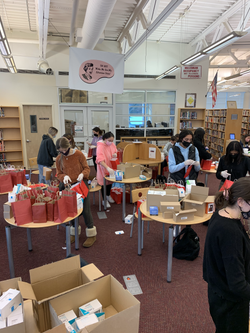 We had the wonderful opportunity to work at the Wheatley School with 20 National Honors Society members who volunteered their time to package bags for future Frontline Skincare deliveries. To work safely, gloves and masks were required, and social distancing was observed.  It was so nice to see everyone working together, and especially to see all the volunteers work gleefully in knowing they are making a difference in their community. We are looking forward to delivering the 500+ care packages the volunteers crafted in efforts to thank our heroes who keep our community safe. Volunteers received an hour of community service for all their help. We would love to continue events like these in the future!